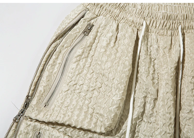 Featuring a unique pleated design and convenient side zips, these shorts come with a drawstring waist for an adjustable fit. Available in two classic colors—Beige and Black—and a variety of sizes from M to XXL, there’s a perfect pair for everyone. The straight cut and breathable fabric make these shorts a fantastic choice for warm-weather wear.